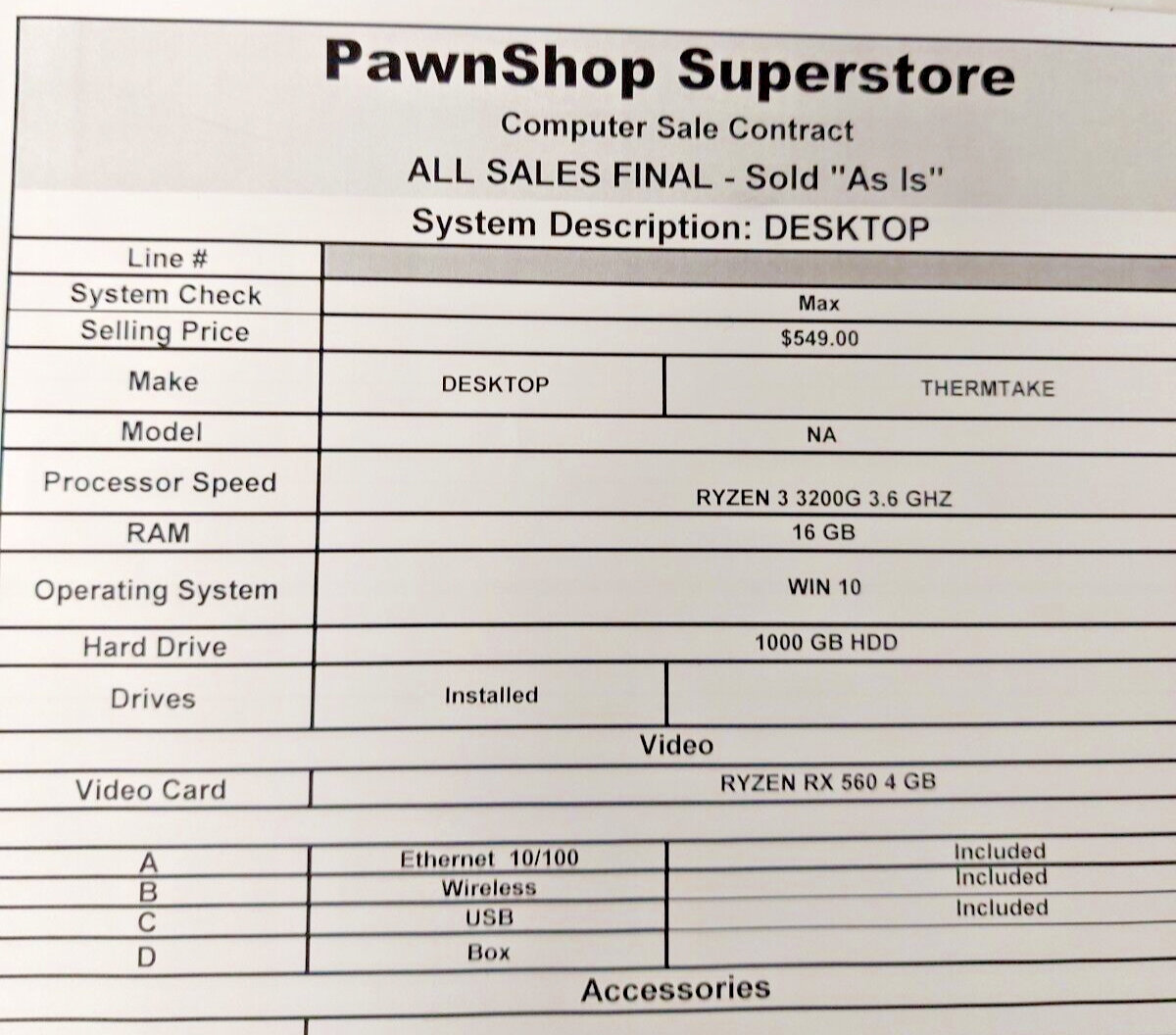 Video Card: Ryzen RX 560 4 GB